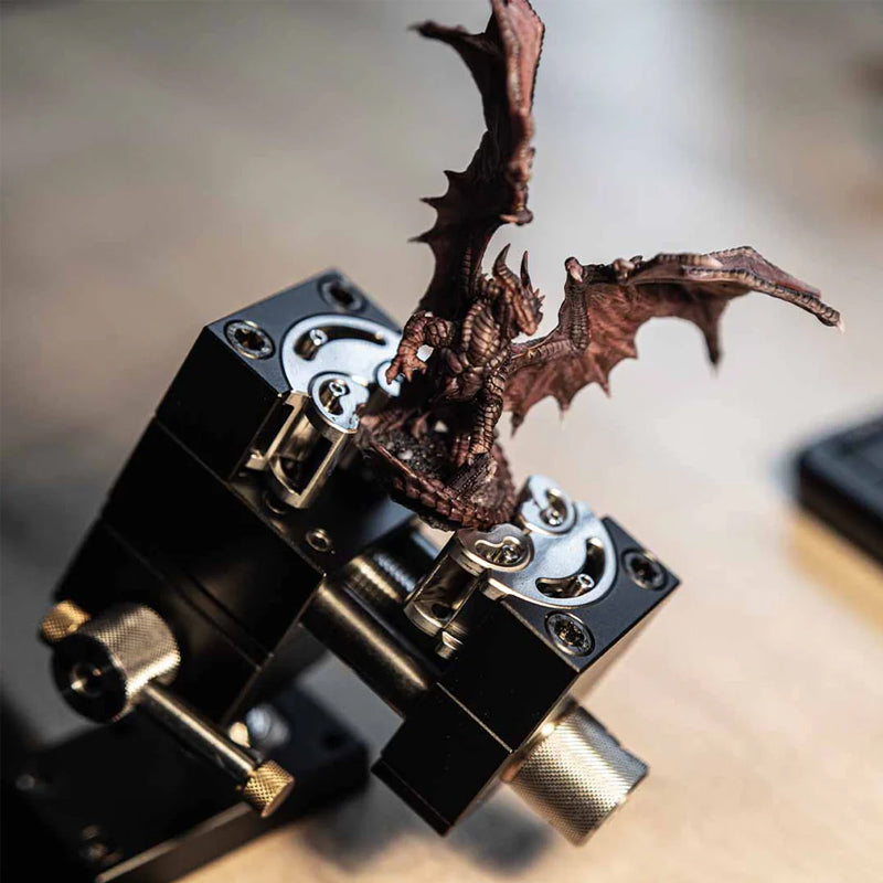 The Desktop Ball Mount can be used with or without the ball joint. It gives you a rigid point to attach your Fractal Vise without having to drill holes in your desk, or if you want your vise in a semi-fixed position. The adjustable ball joint gives you full motion to get that perfect working angle.